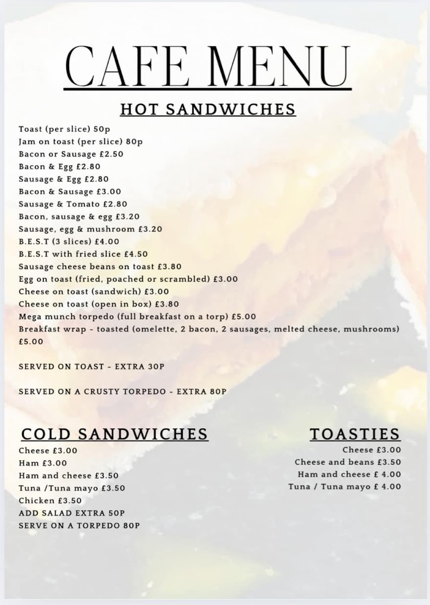 Welcome to The Munch Box Cafe, nestled at 20 Church St, Darlaston. This delightful cafe offers a diverse menu that caters to various tastes and appetites. Starting with their scrumptious cold sandwiches, you can enjoy classics like cheese and ham, or opt for a tempting tuna mayo, all priced affordably between £3.00 and £3.50.